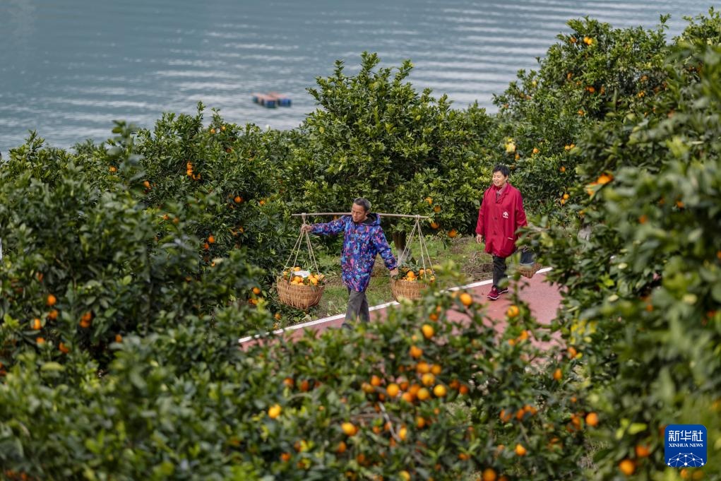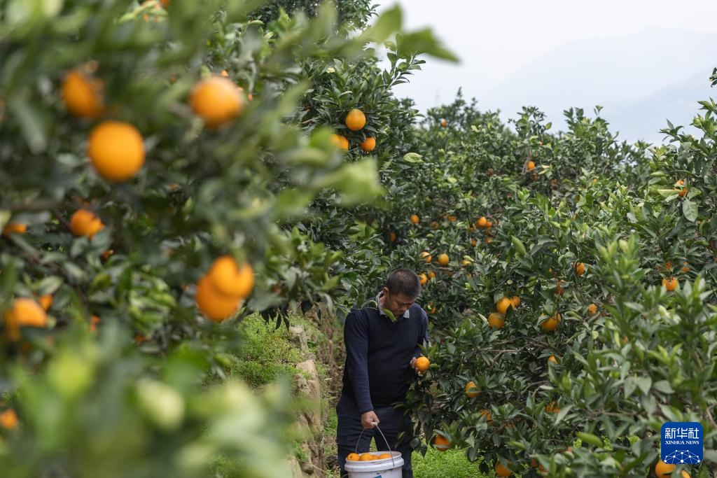 12月13日,在重庆市奉节县安坪镇三沱村,村民在采摘奉节脐橙。