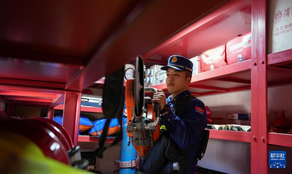 12月5日,布宫消防救援大队队员在例行检查消防设备。