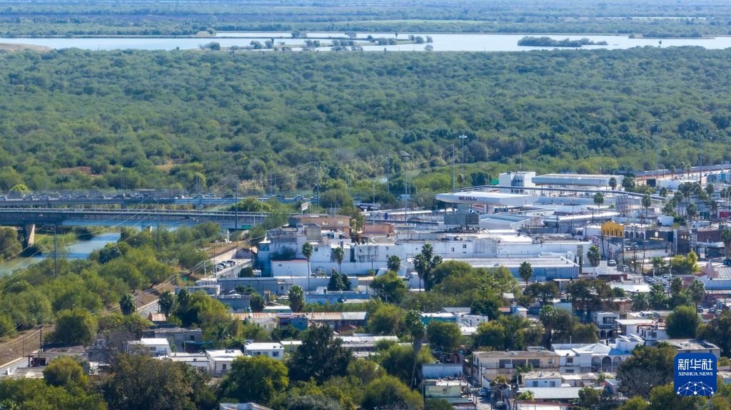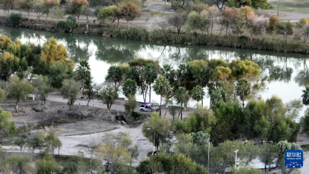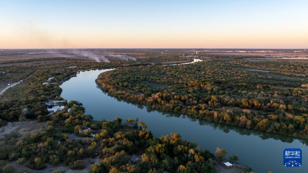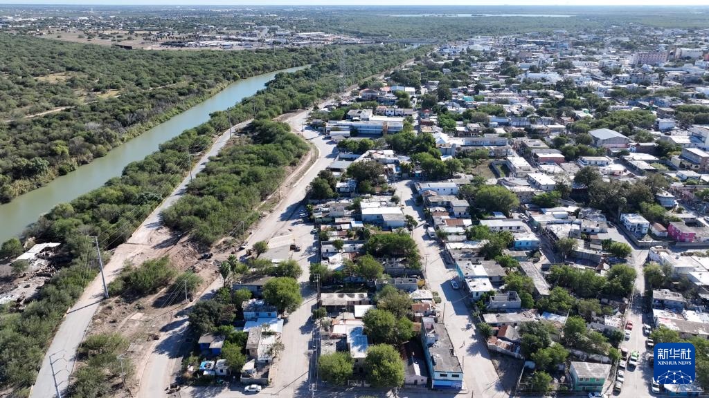 这是12月11日在墨西哥边境城市雷诺萨拍摄的格兰德河墨美边境段(无人机照片)。