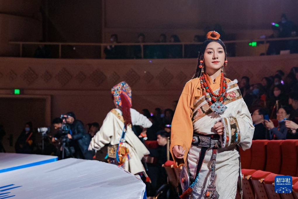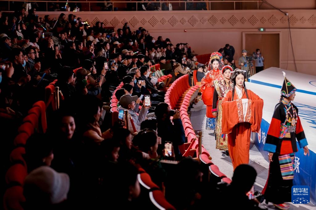 这是1月3日拍摄的首届西藏“衣脉相承”服饰文化周开幕式服饰秀现场。