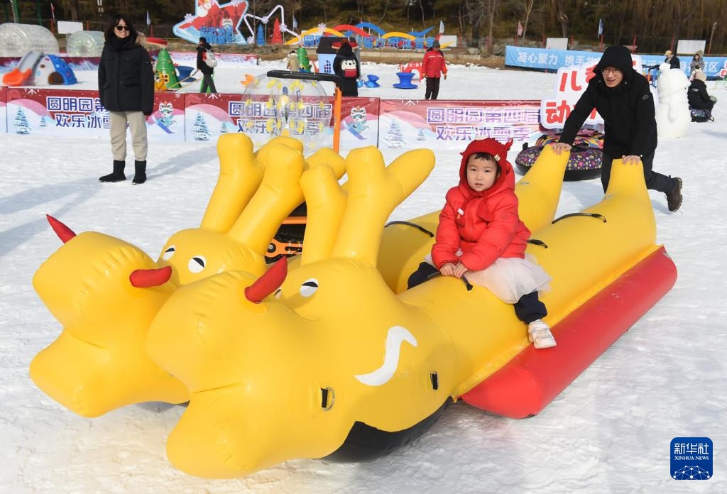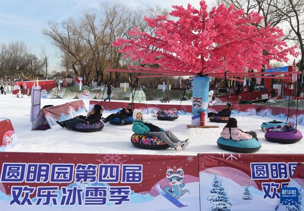 当日,2025年圆明园第四届欢乐冰雪季正式拉开帷幕。今年圆明园雪场活动区域设置在松风萝月湖,雪场面积约22000平方米,场内设有最多可供46人同时滑行的雪圈滑道,此外还有雪地悠波球、雪地小火车、雪地转转等趣味项目和冰壶体验区,雪场将开放至2月4日。受气温偏高影响,目前冰场暂时不对公众开放。