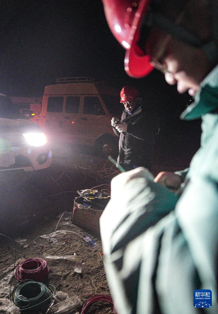 1月7日,在定日县长所乡集中安置点,工作人员在保障电力供应。