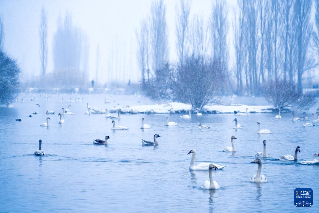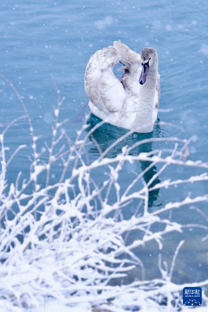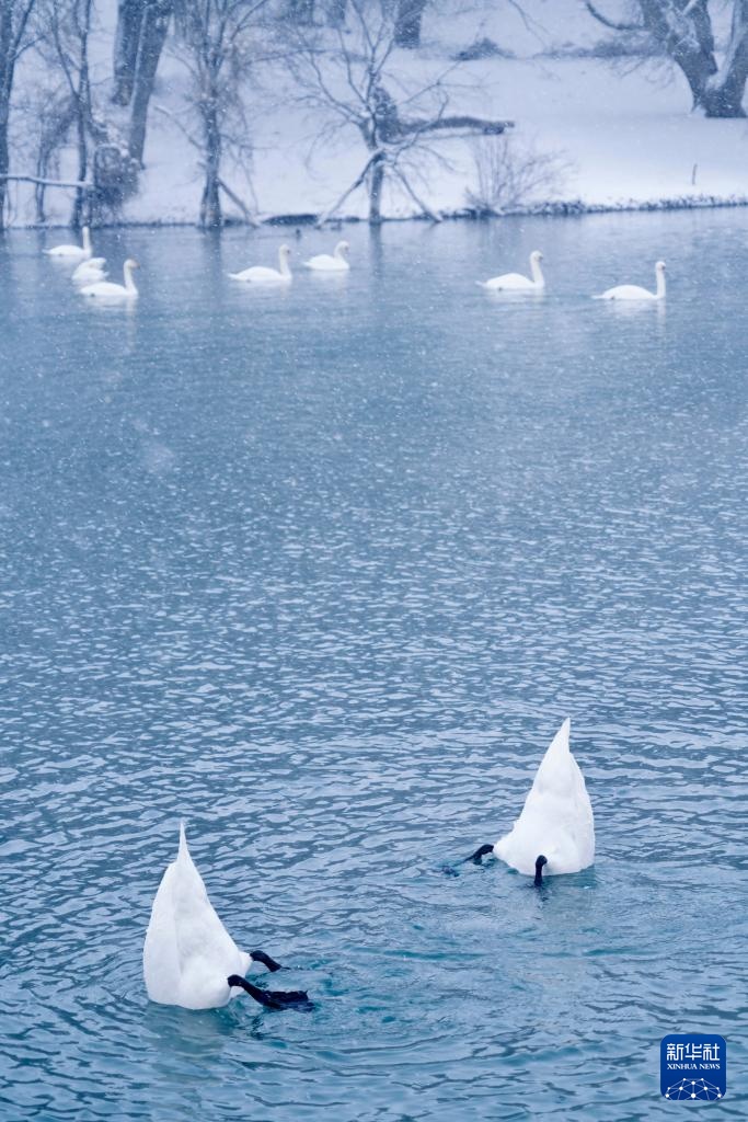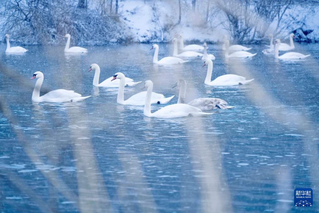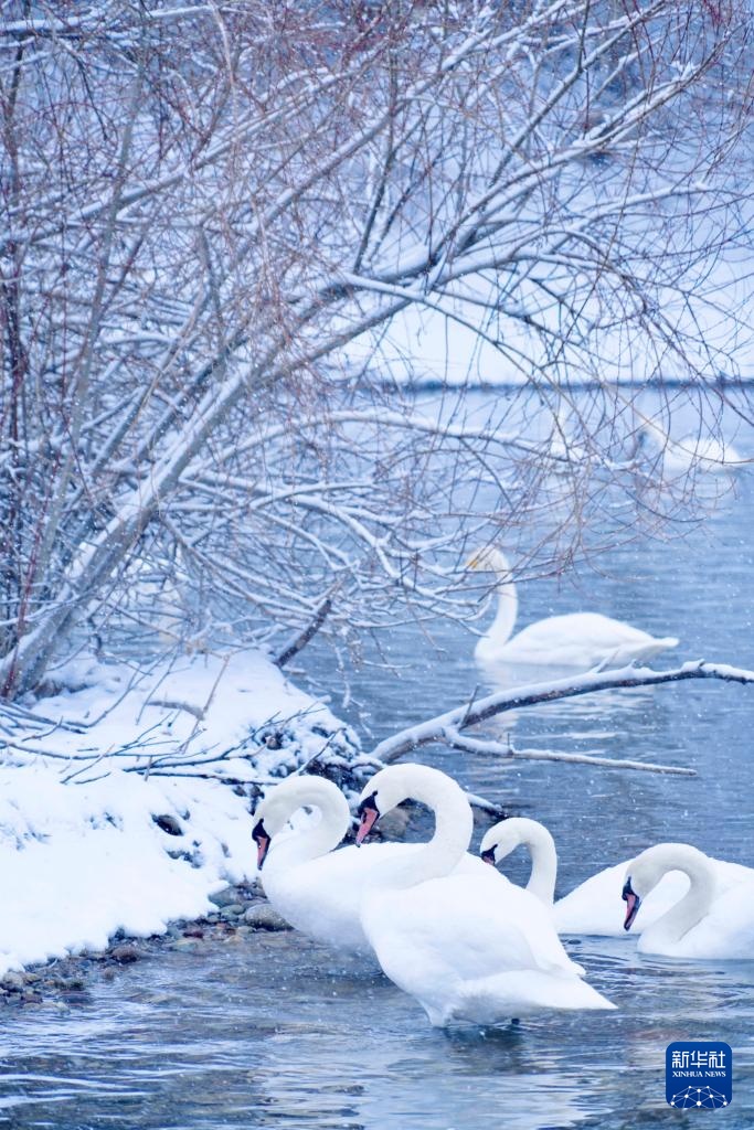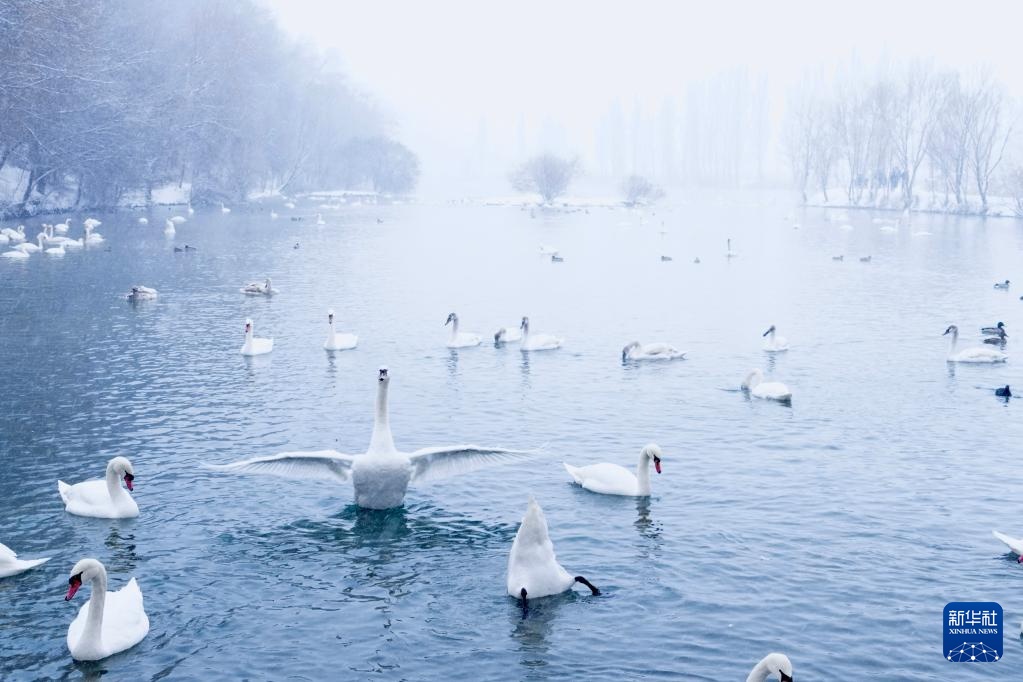 这是1月8日在新疆伊宁县天鹅泉拍摄的天鹅。