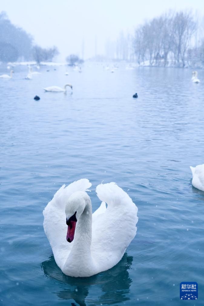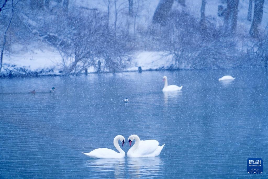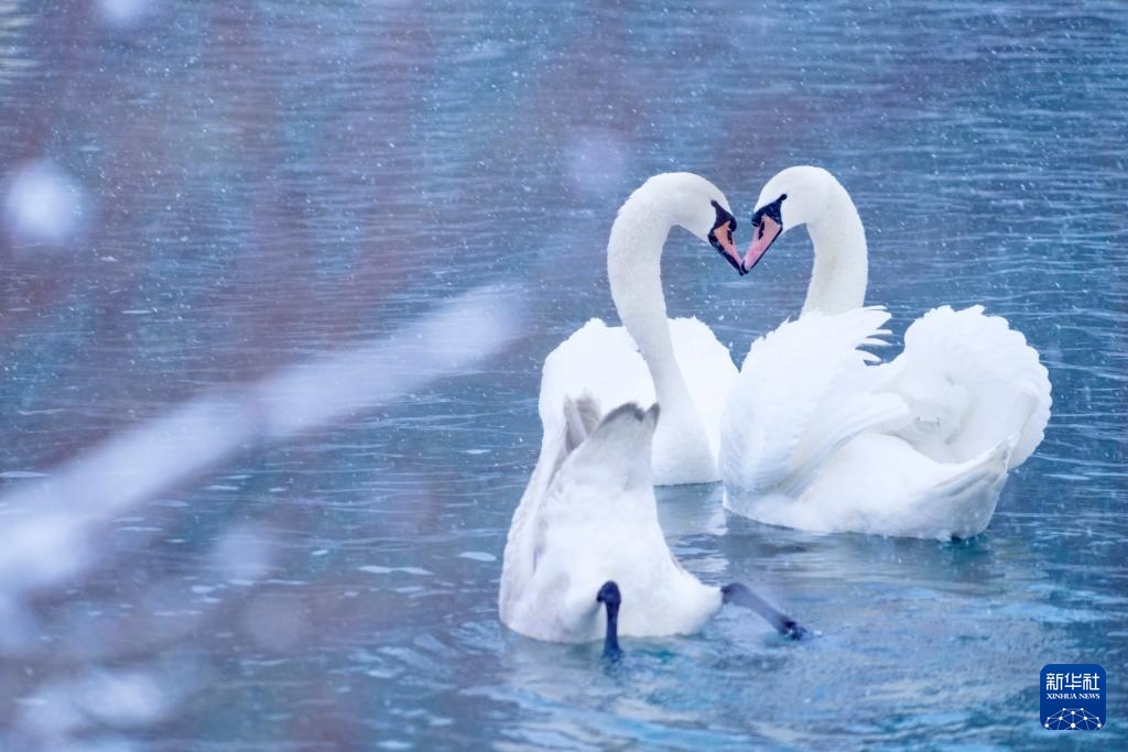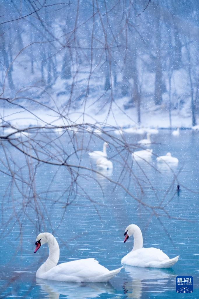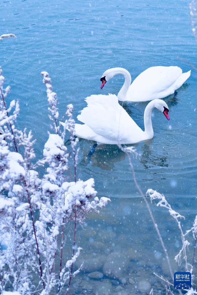 这是1月8日在新疆伊宁县天鹅泉拍摄的天鹅。