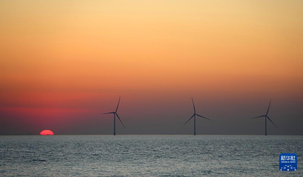 1月7日拍摄的位于山东省莱州市海域的海上风电项目。