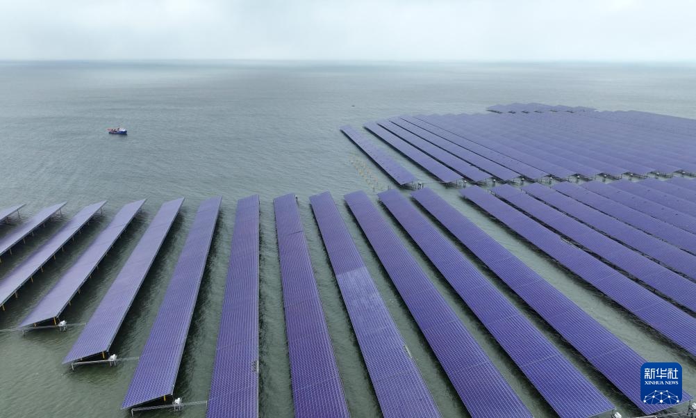 1月8日拍摄的位于山东省招远市海域的海上光伏项目(无人机照片)。