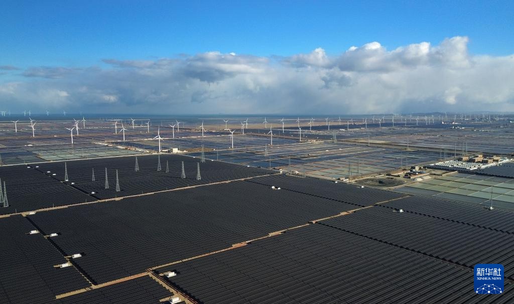 1月8日拍摄的位于山东省莱州市的中广核莱州土山600兆瓦盐光互补项目(无人机照片)。