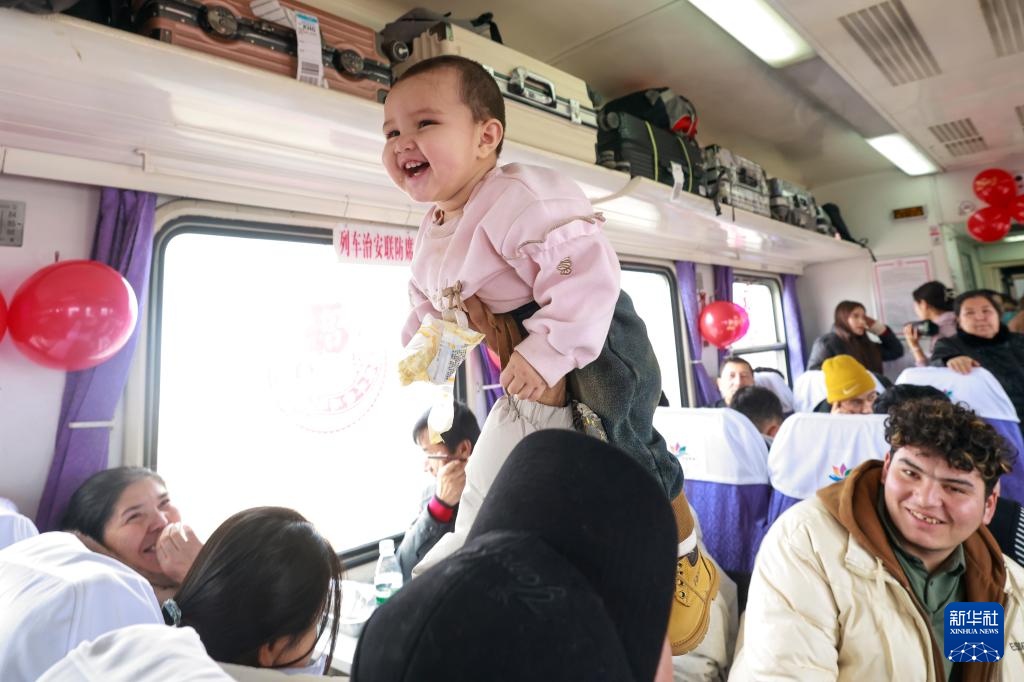 在7557次列车上,旅客随音乐跳起麦西来甫(1月2日摄)。