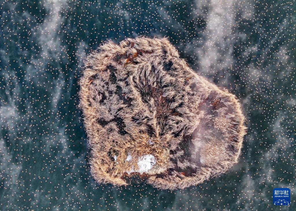 这是1月11日拍摄的呼和浩特大黑河郊野公园“千岛湖”美景(无人机照片)。
