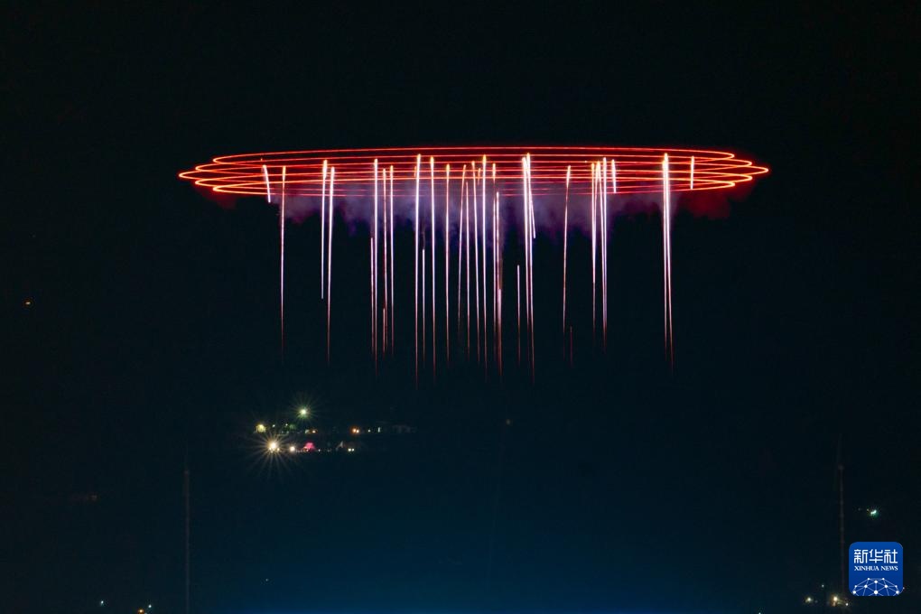 这是在湖南省浏阳市天空剧院拍摄的一场“烟花+无人机”表演(2024年12月7日摄)。