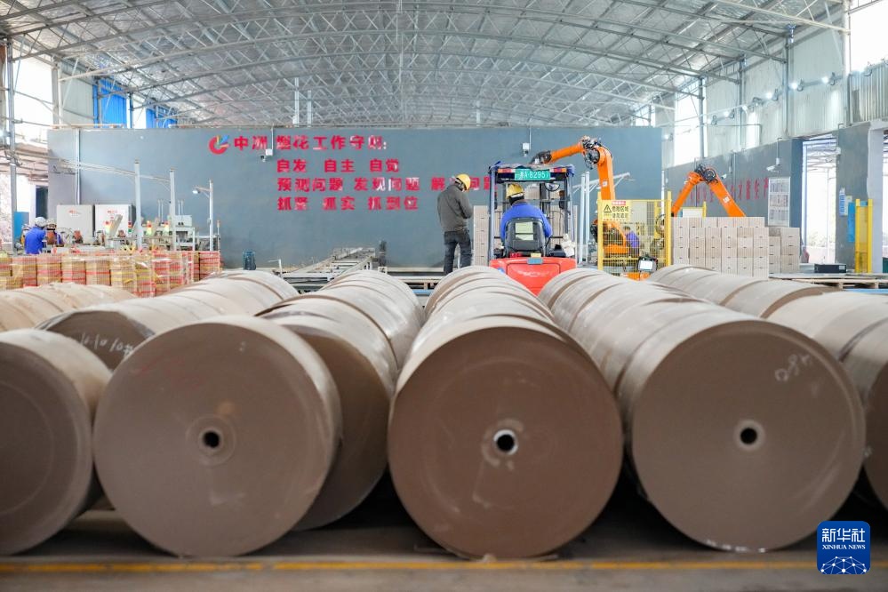 在湖南省浏阳市一家烟花生产企业的厂房,工作人员使用自动化设备组装烟花空内筒(1月7日摄)。