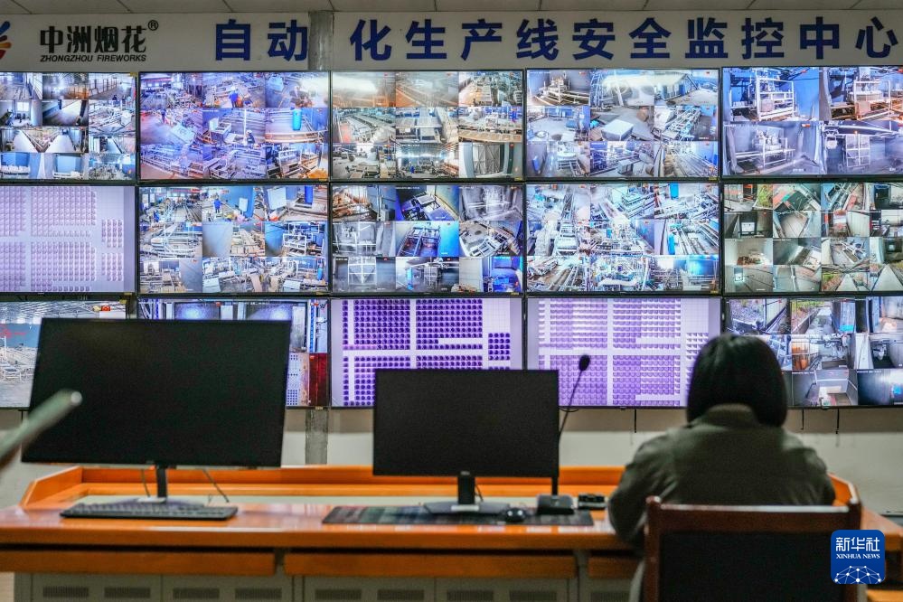 这是在湖南省浏阳市一家烟花生产企业拍摄的自动化生产线安全监控中心(1月7日摄)。