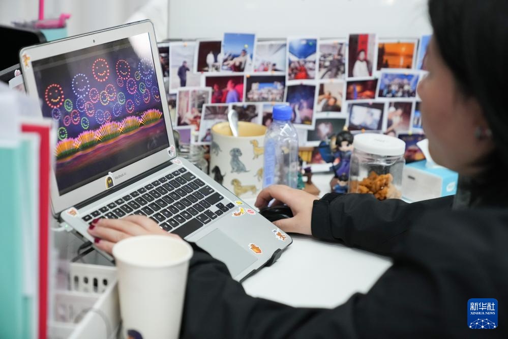 在湖南省浏阳市一家烟花创意设计公司,工作人员在设计烟花燃放效果图(1月7日摄)。