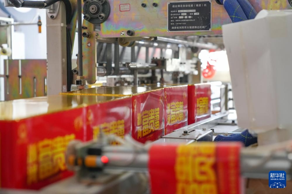 在湖南省浏阳市一家烟花生产企业的厂房,烟花自动包装机在包装烟花(1月7日摄)。