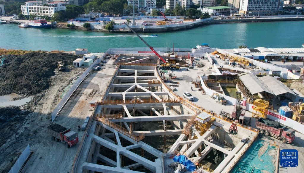 这是1月11日拍摄的三亚河口通道工程项目现场(无人机照片)。