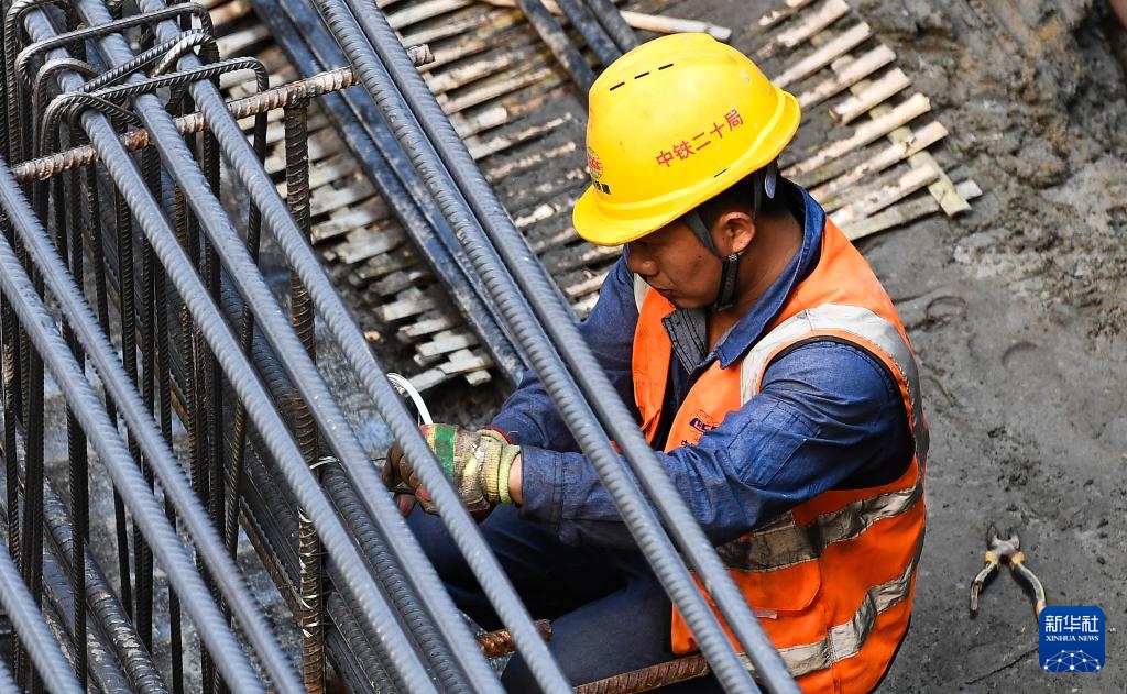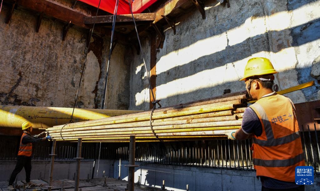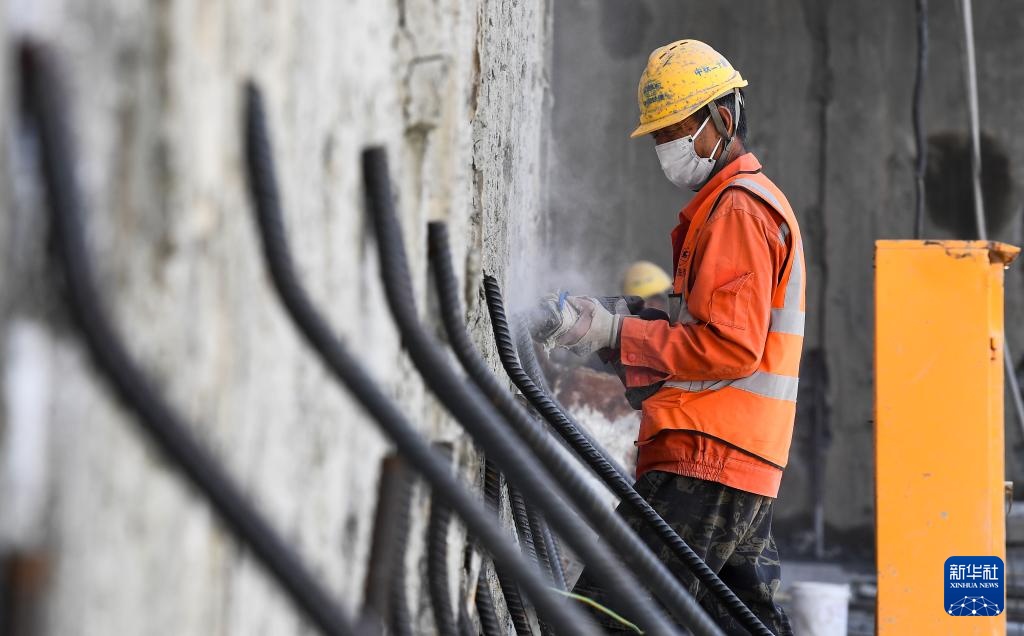 1月11日,工人在三亚河口通道工程项目工地施工。