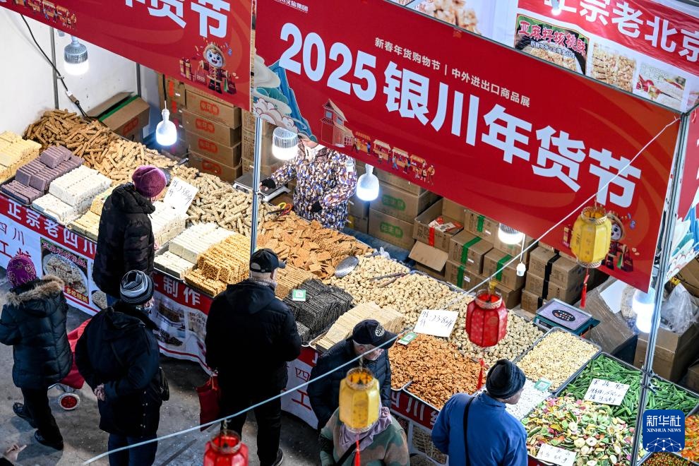 1月12日,市民在2025银川年货节上选购年货小吃。