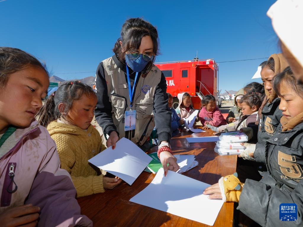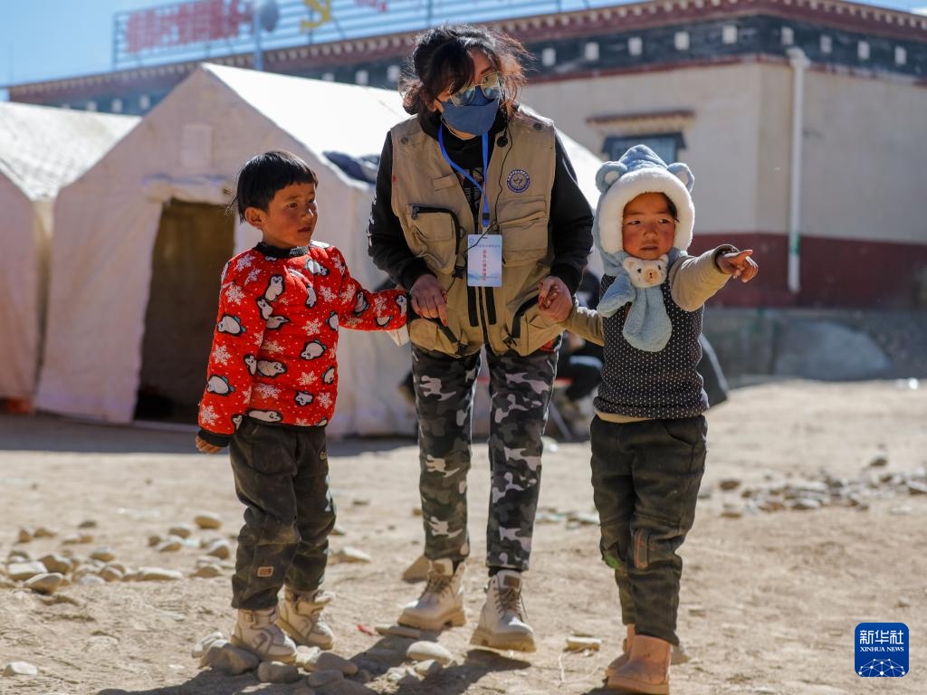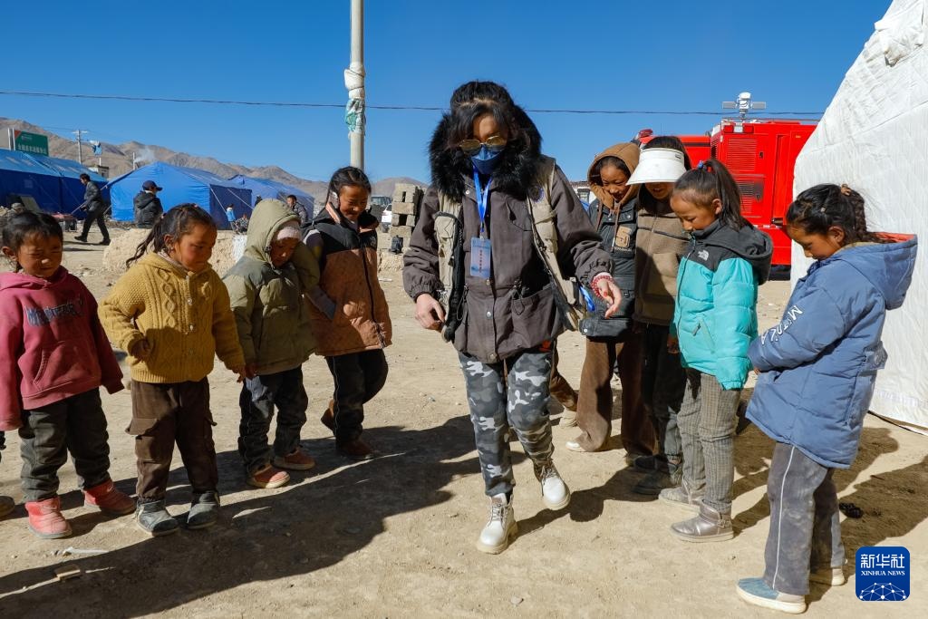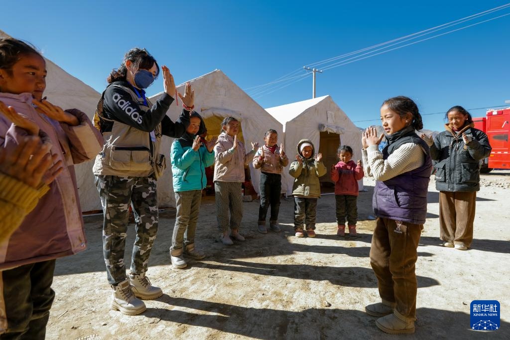 在西藏定日县曲洛乡措昂村受灾群众安置点,中国科学院心理研究所应急心理救援队的专家谭惜仁组织安置点内的80余名孩子们画画、唱歌、运动,为他们进行心理疏导。孩子们亲切地称她为“甜心姐姐”。谭惜仁曾参加过四川汶川地震、青海玉树地震等震后心理救援工作,经验丰富。