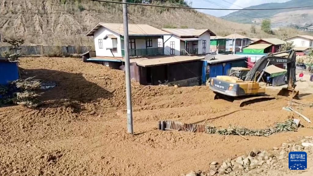 1月13日,在缅甸克钦邦帕甘镇,玉石矿区泥潭坍塌后流出淤泥导致民房被毁和淹没(视频截图)。