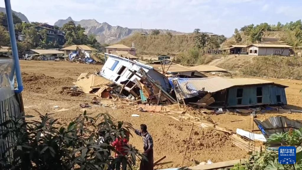 1月13日,在缅甸克钦邦帕甘镇,玉石矿区泥潭坍塌后流出淤泥导致民房被毁(视频截图)。