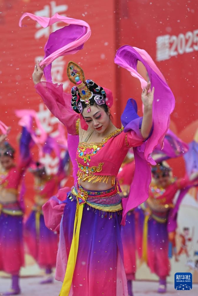 1月14日,演员表演武威市级非物质文化遗产——西凉乐舞。