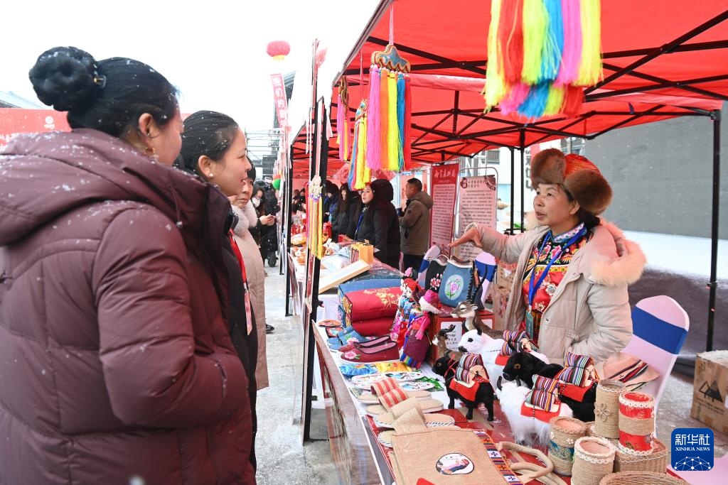 1月14日,工作人员向游客介绍非遗产品。