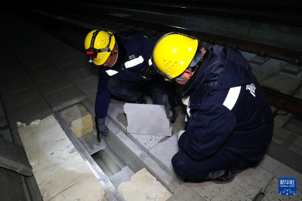 1月14日凌晨,在新乌鞘岭隧道内,桥隧工使用小锤检查边墙和施工缝。