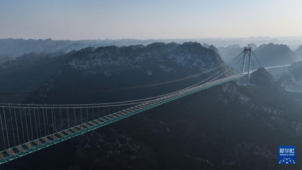 花江峡谷大桥因跨越被誉为“地球裂缝”的花江大峡谷而得名,是贵州省六枝至安龙高速公路的关键控制性工程,自2022年开工建设,预计2025年建成。大桥为钢桁梁悬索桥,全长2890米,桥面距水面垂直高度达625米,建成后将成为新的世界第一高桥。