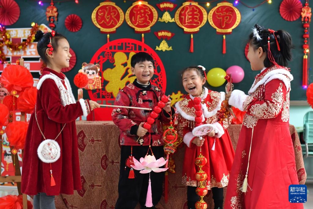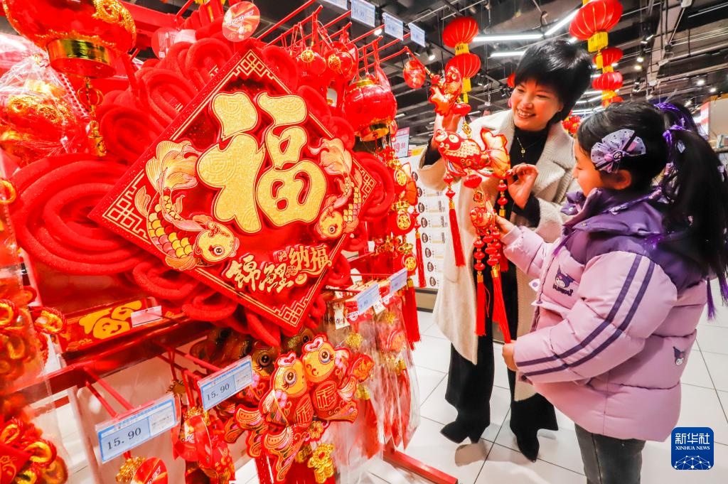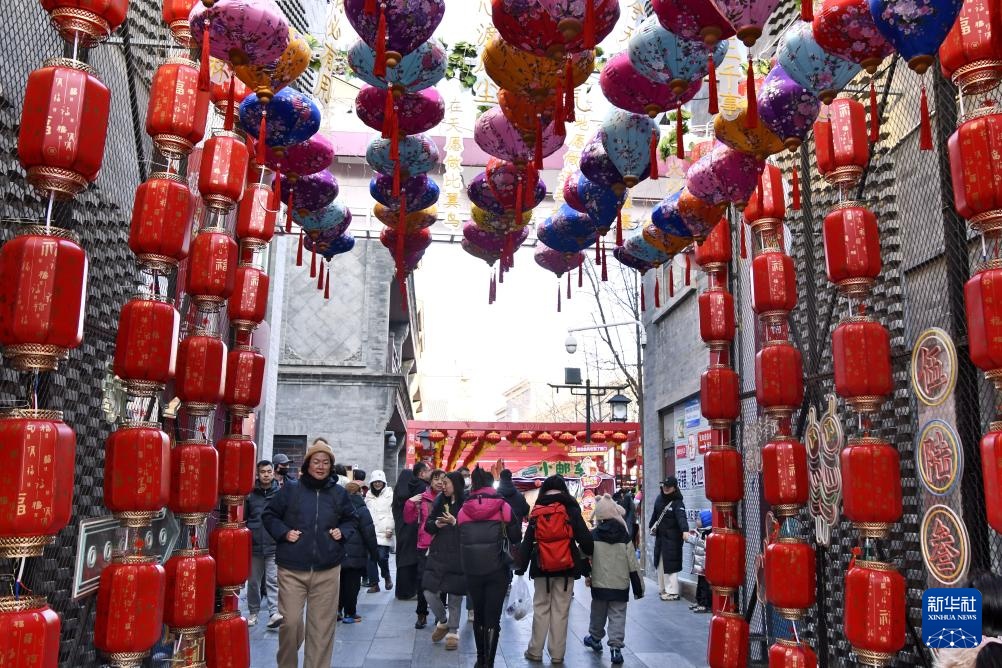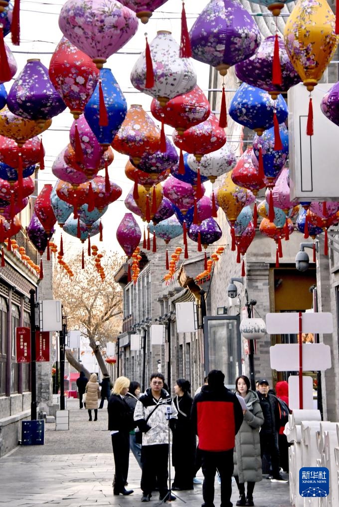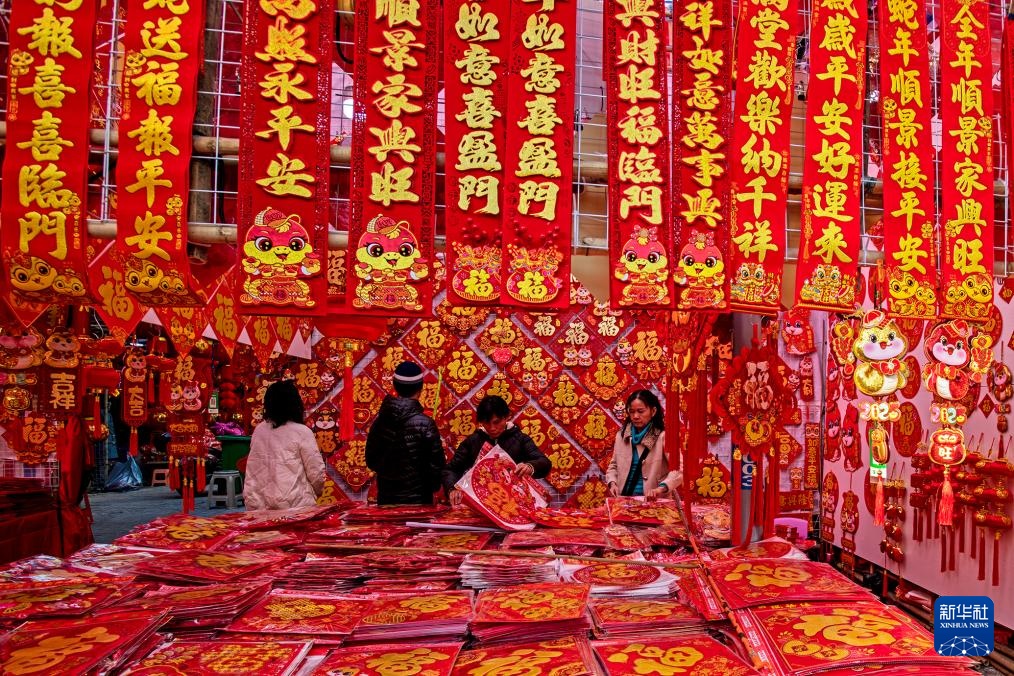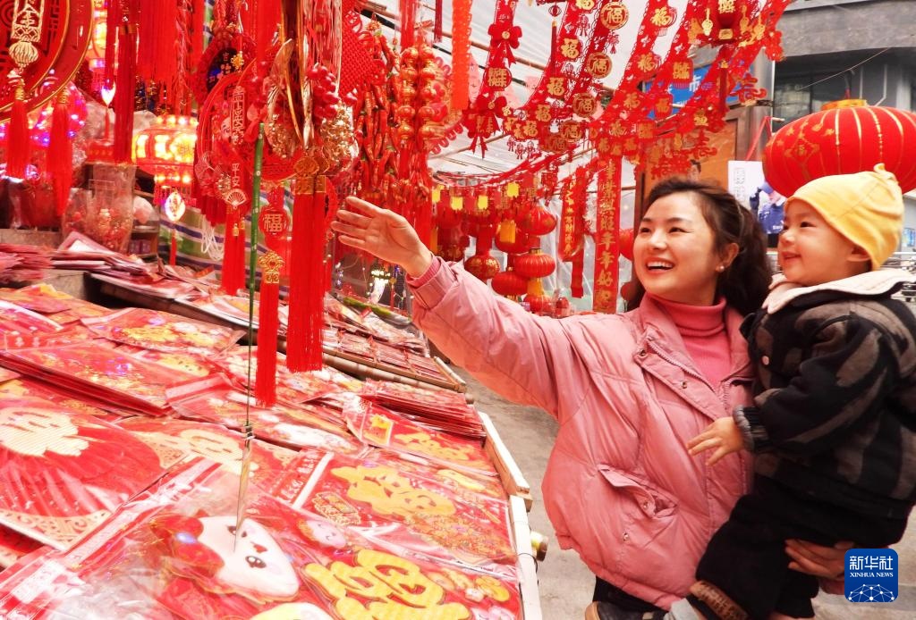 春节临近,大街小巷张灯结彩,人们逛集市、购年货,参加各种迎新年活动。