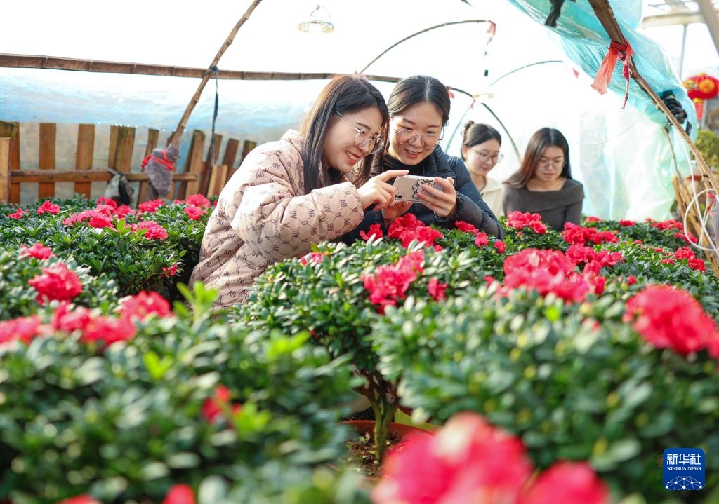 1月13日,在山东省荣成市石岛管理区港湾街道车脚河村花卉大棚,市民在选购花卉。