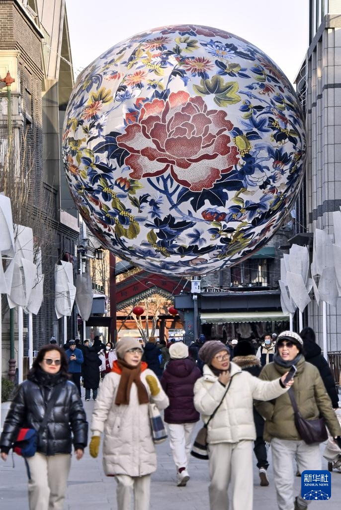 1月13日,游客在北京前门商业区购物休闲。