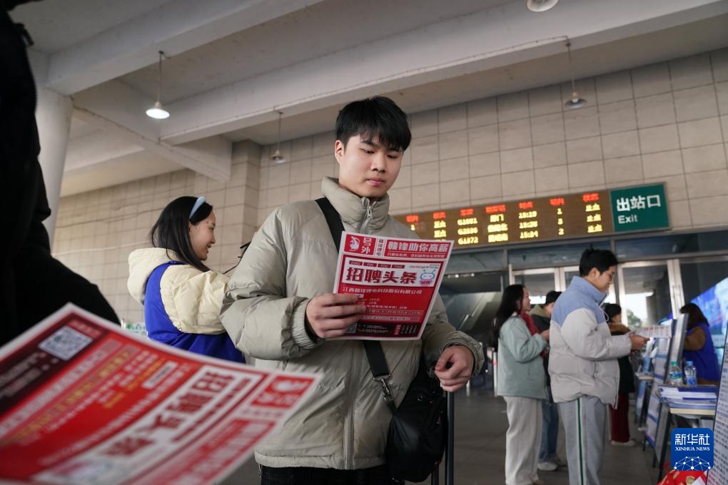当日是春运首日,江西省新余市人社局在新余北站组织开展高铁站专场招聘活动。多家本地优质企业将招聘信息展板放置在出站必经之地,方便求职者了解岗位信息。据悉,此次活动计划招聘近800人。