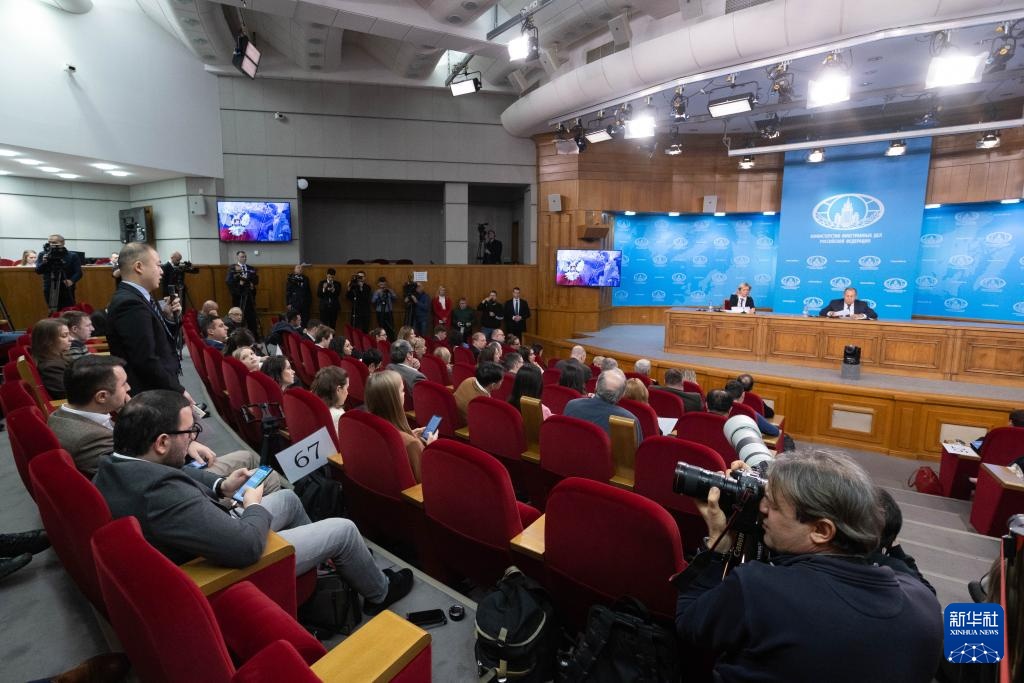 1月14日,在俄罗斯首都莫斯科,记者向俄外长拉夫罗夫提问。