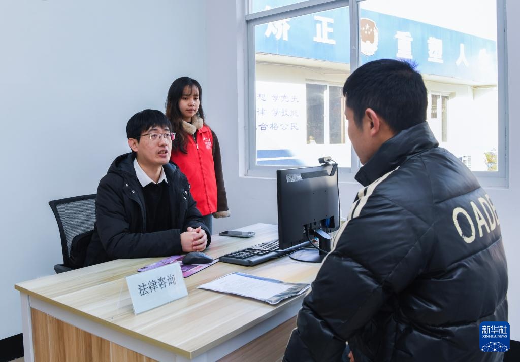 1月15日,民盟慈溪市基层委员会盟员(左一)为社区矫正对象提供法律咨询。