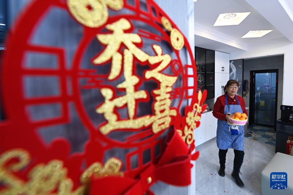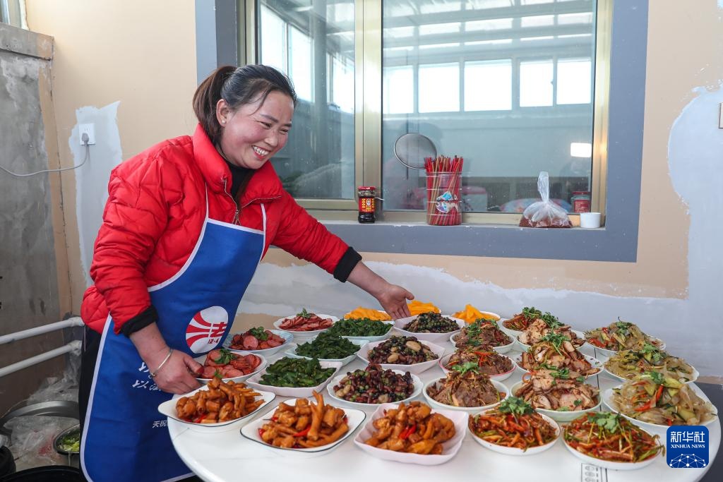 1月15日,在天祝藏族自治县哈溪镇水泉村生态及地质灾害避险搬迁安置点,村民在新搬迁户家里帮忙准备乔迁宴。