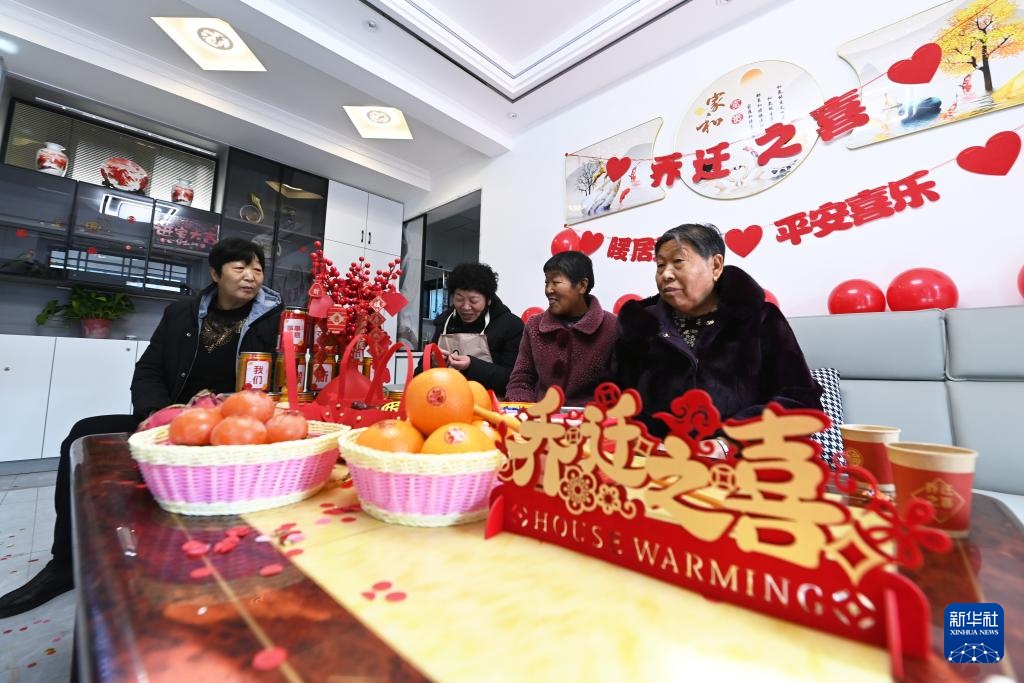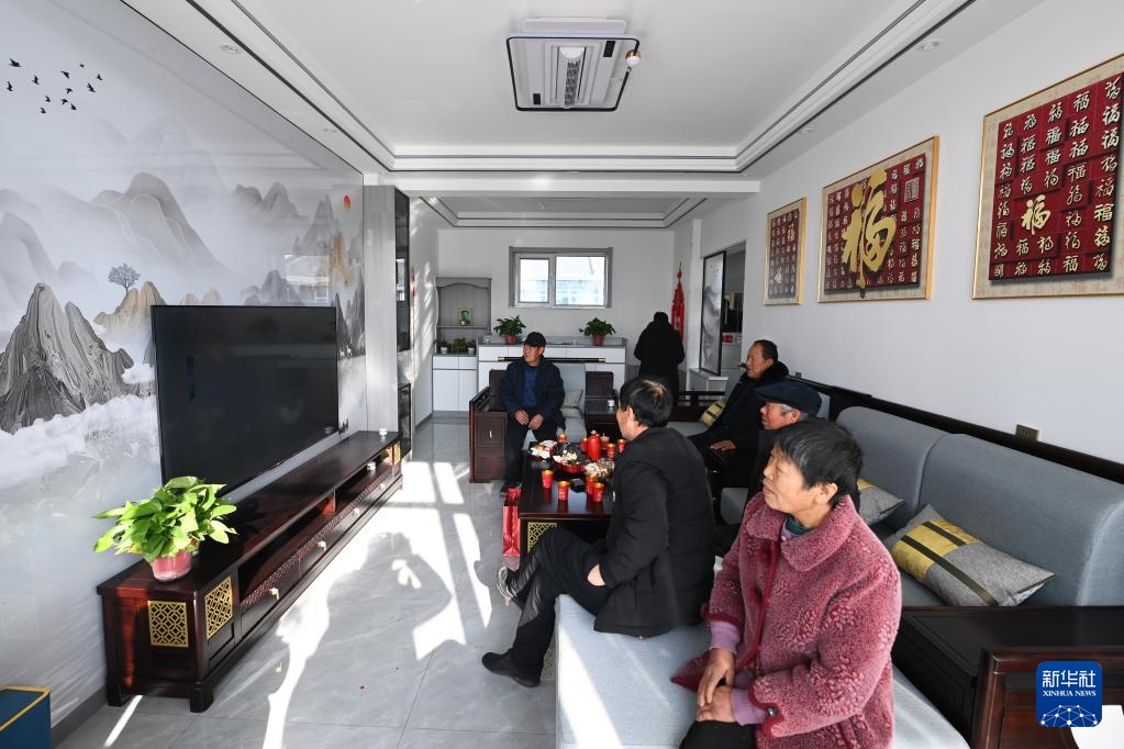 1月15日,在古浪县大靖镇三台村生态及地质灾害避险搬迁安置点,亲友们来到吴明月的新家暖房。