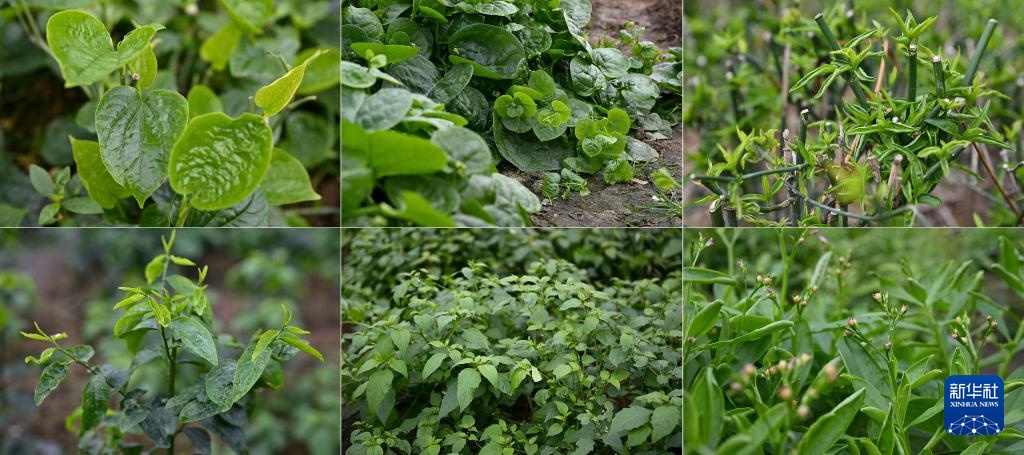 这是在五指山市通什镇红雅村野菜种质资源圃拍摄的野菜(拼版照片, 1月17日摄)。