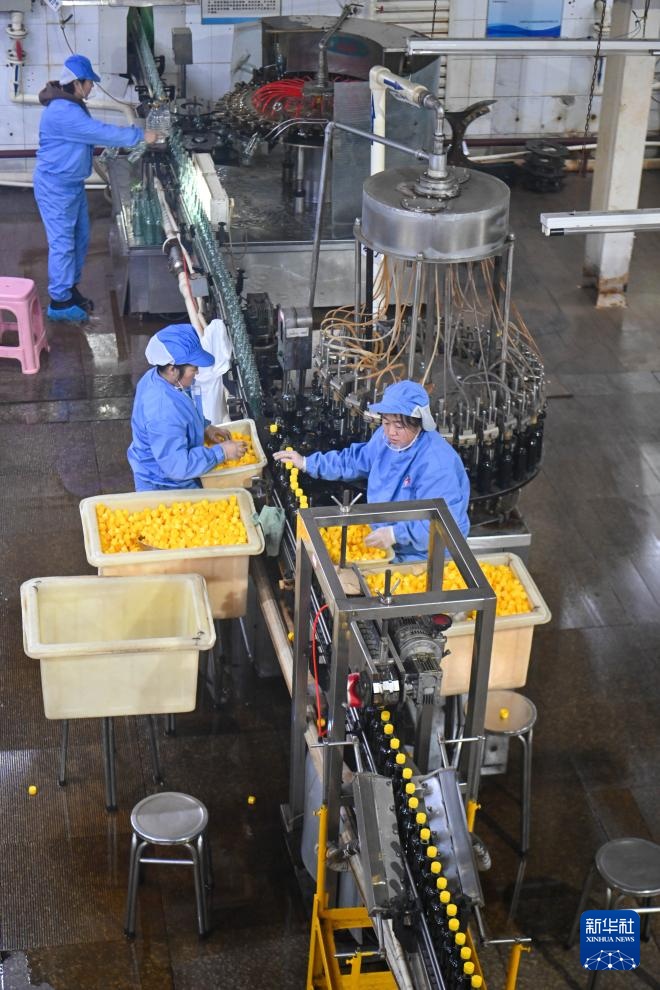 1月17日,在天津市静海区天立独流老醋股份有限公司,工人在罐装车间内生产。