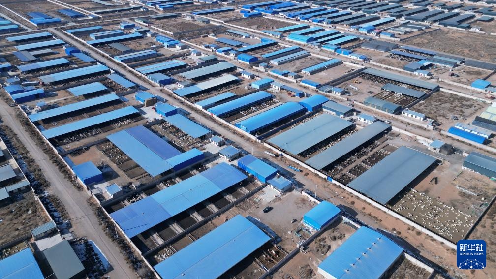 这是1月16日在古浪县黄花滩干城乡富民新村拍摄的一处规模养殖场(无人机照片)。