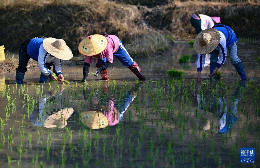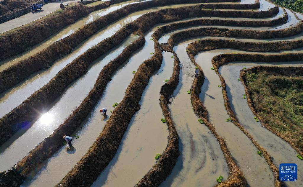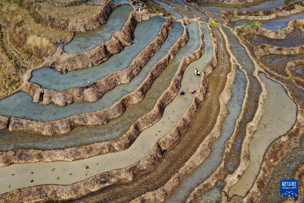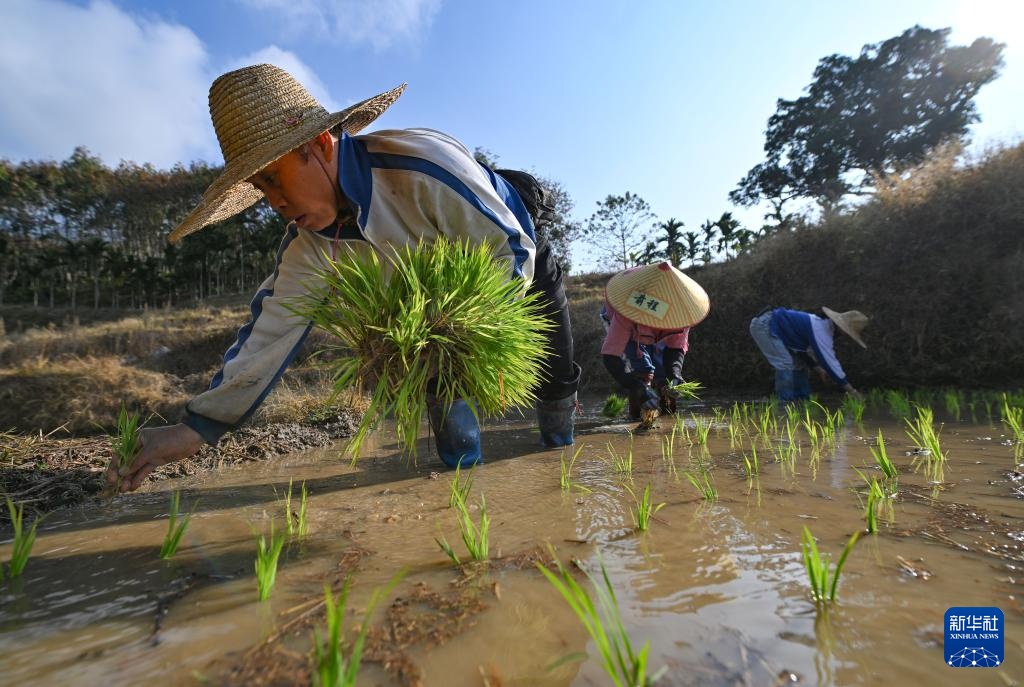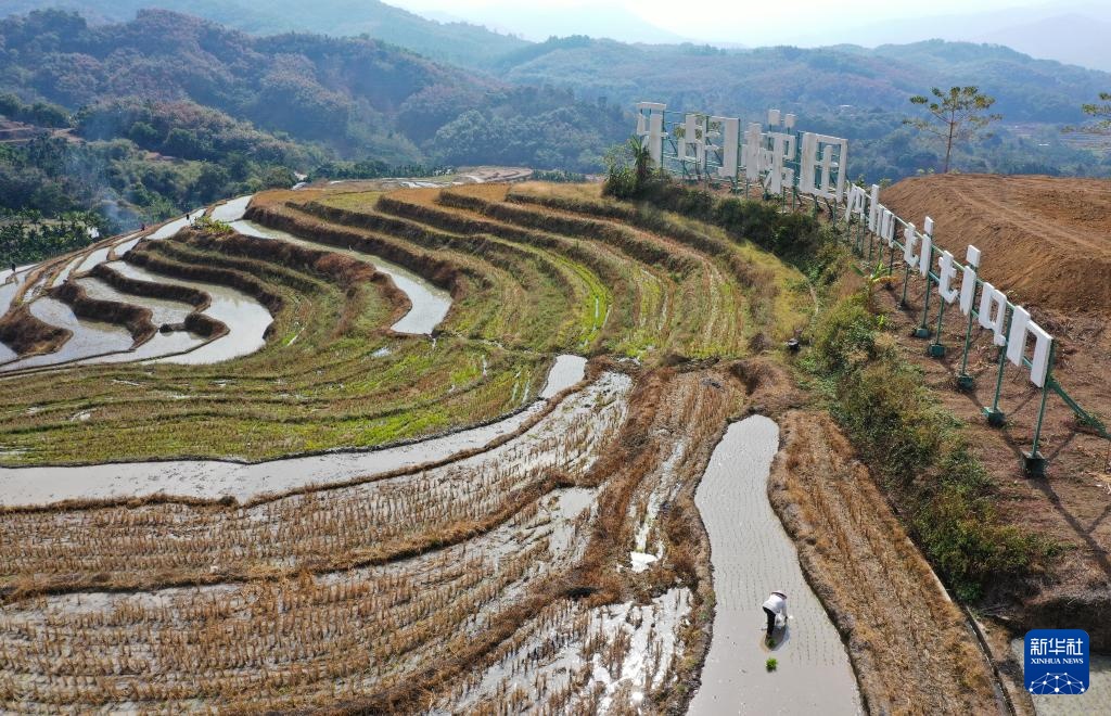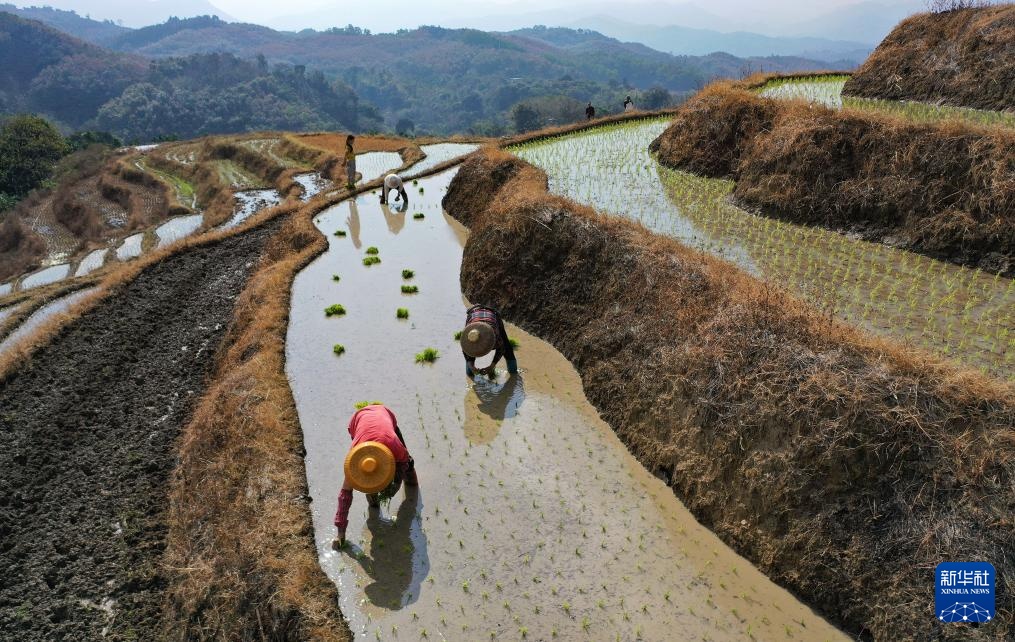 新春将至,海南省中部山区的五指山已进入春耕时节。在五指山市毛阳镇牙胡梯田,农民们辛勤劳作,田间一派农忙景象。