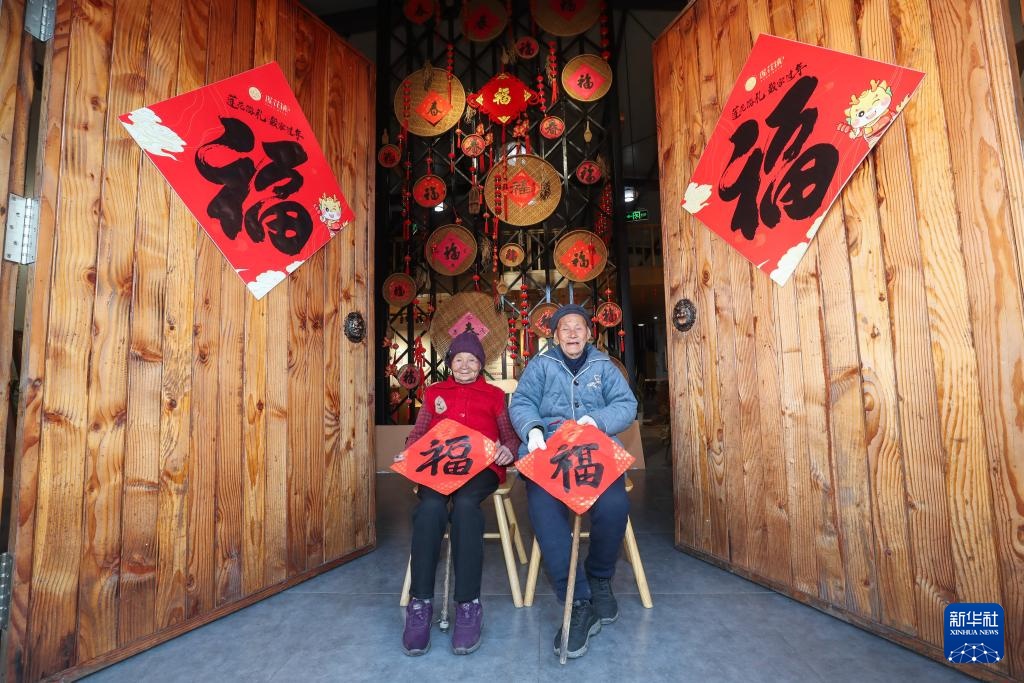 1月18日,戴家村的长寿老人拍摄新春照片。