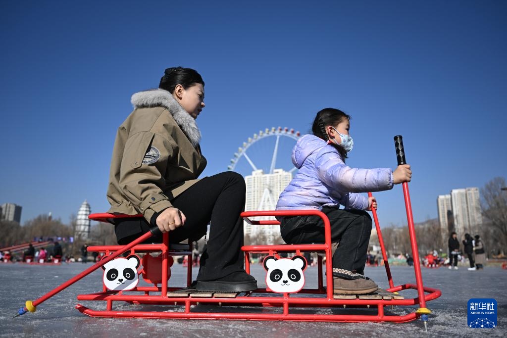 当日,青海省西宁市天气晴好,不少市民来到位于西宁市人民公园的冰场滑冰游玩,欢度周末。