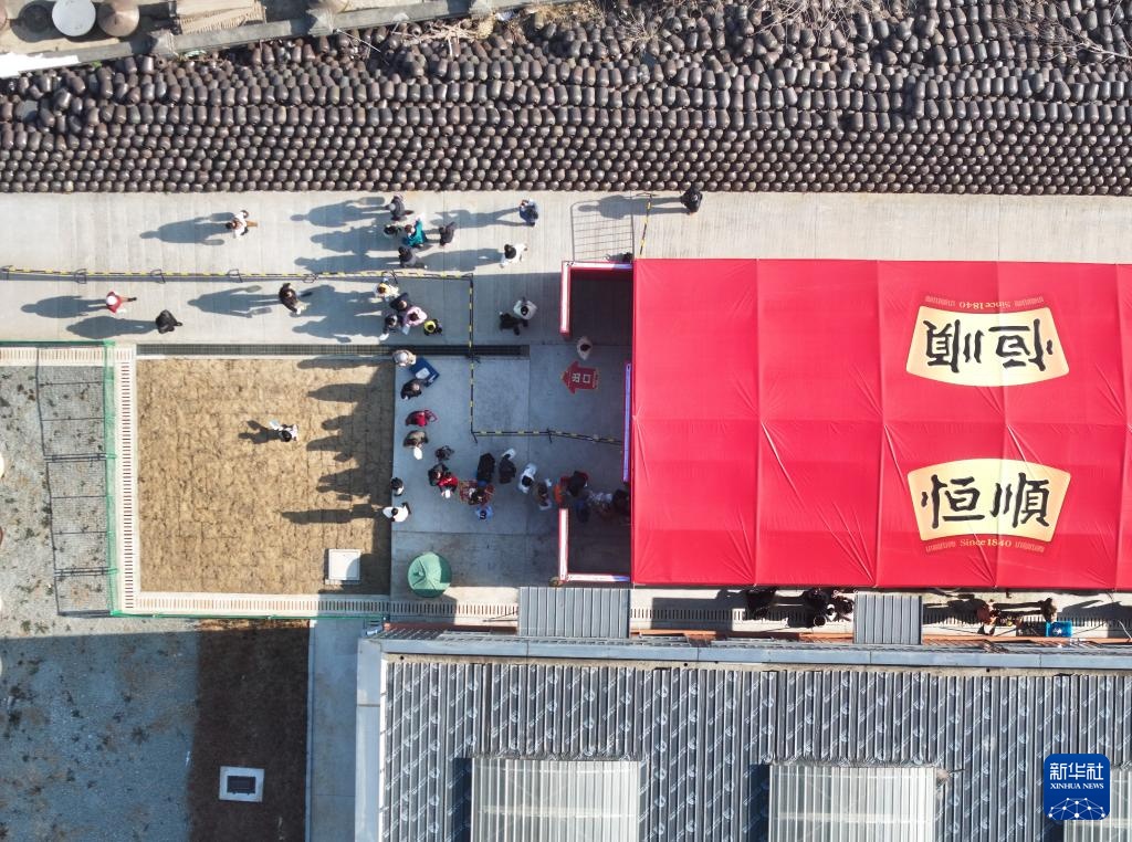 1月18日,人们赶到活动现场打酱油(无人机照片)。