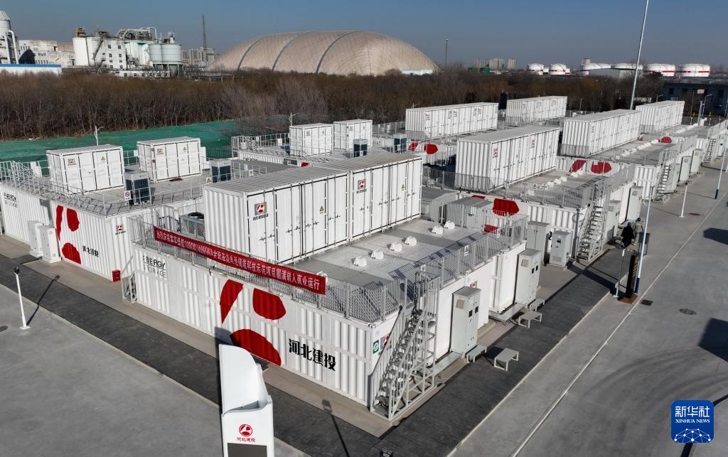 1月18日,工人在河北省邢台市信都区新型电力系统示范工程——独立储能电站巡检(无人机照片)。