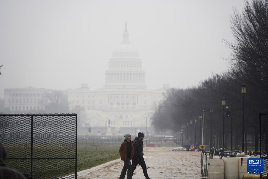 1月19日,人们从美国华盛顿的国会大厦前走过。