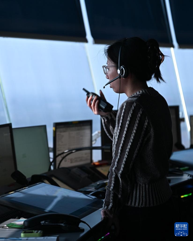 春运期间,在海口美兰国际机场塔台,来自民航海南空管分局的塔台管制员忙碌地指挥一架架客机平稳起降,维持空中交通秩序,协调处理各种紧急情况,为春运保驾护航。2025年春运期间,海口美兰国际机场预计起降航班27600架次。