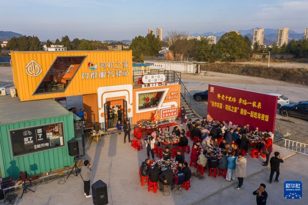 临近农历小年,浙江杭州建德市更楼街道的“司机之家”爱心驿站举办“南来北往共团圆”货车司机温暖年夜饭系列活动,卡车司机和他们的家属齐聚一堂,提前感受年味。