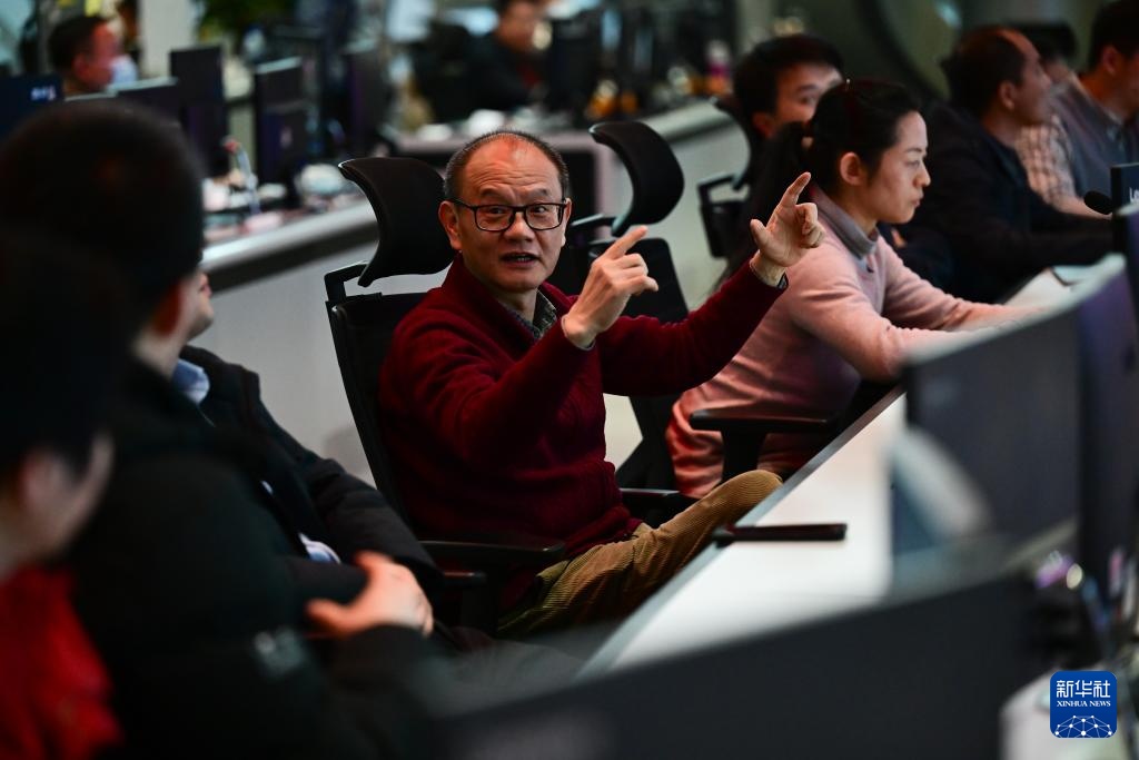 1月18日,在全超导托卡马克核聚变实验装置(EAST)控制大厅,EAST物理实验总负责人龚先祖在一次冲击实验中与团队成员交流。