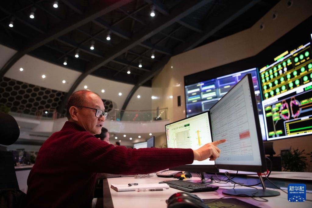 1月20日,EAST物理实验总负责人龚先祖在实验过程中观察数据。