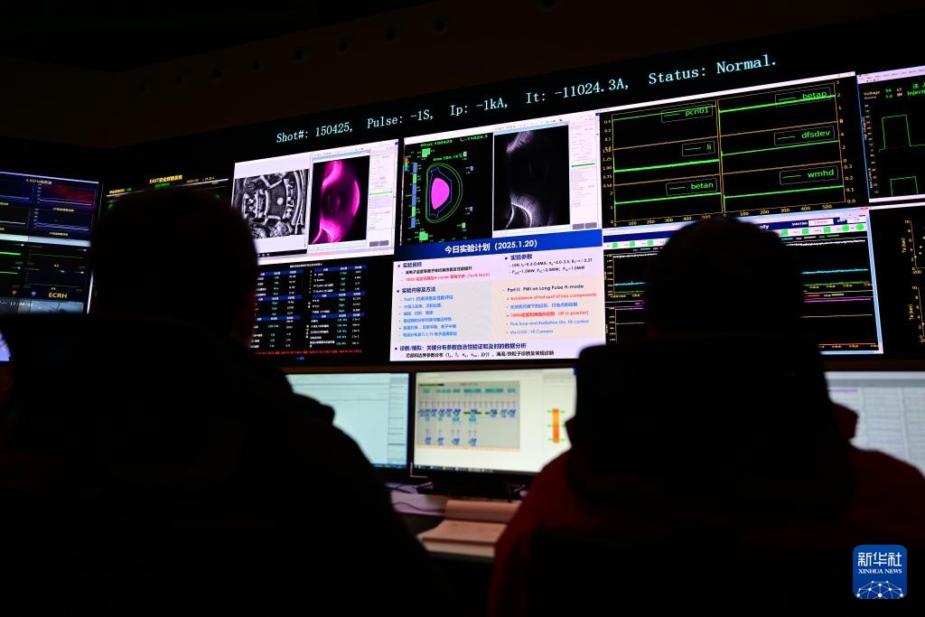 1月20日,EAST物理实验团队成员在实验中观察数据。
